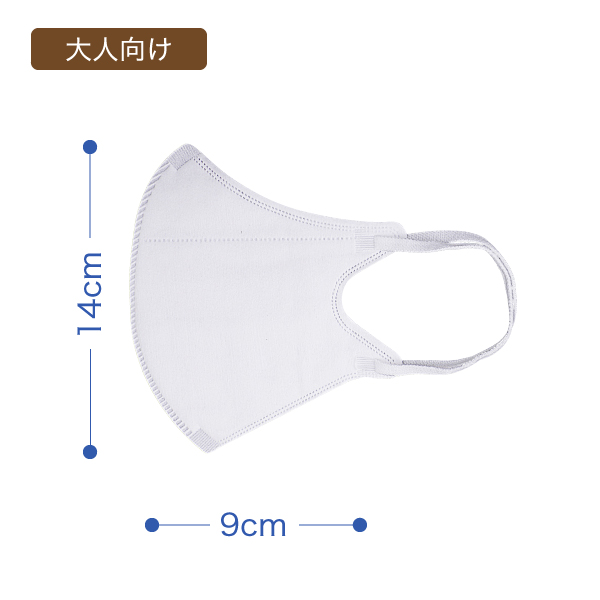 口元だけでなく頬の中間あたりまで覆うフルカバータイプ。横からの細菌、花粉の侵入も防ぎます。